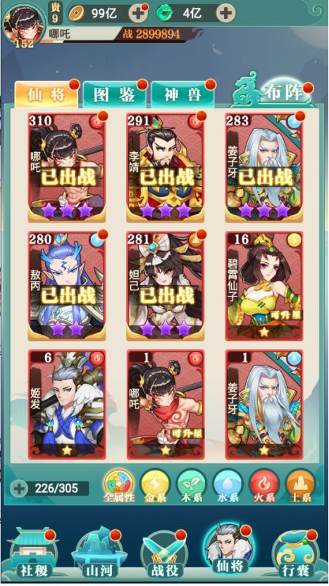 4. 仙将养成包括升级、进阶、升星;