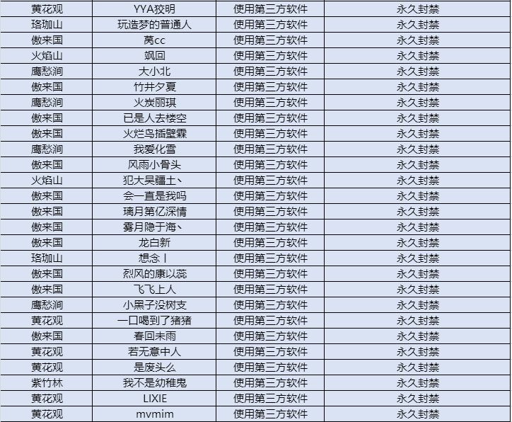 本帖将用于各位上仙举报公屏不当言论、使用第三方软件(包括但不限于除游戏安装包外的脚本、外挂、加速器、美化包等)、卡BUG等违规游戏行为,我们将对举报内容进行核实,并视情况给予禁言1天-永久禁言、封禁角色、封禁账号等惩罚。