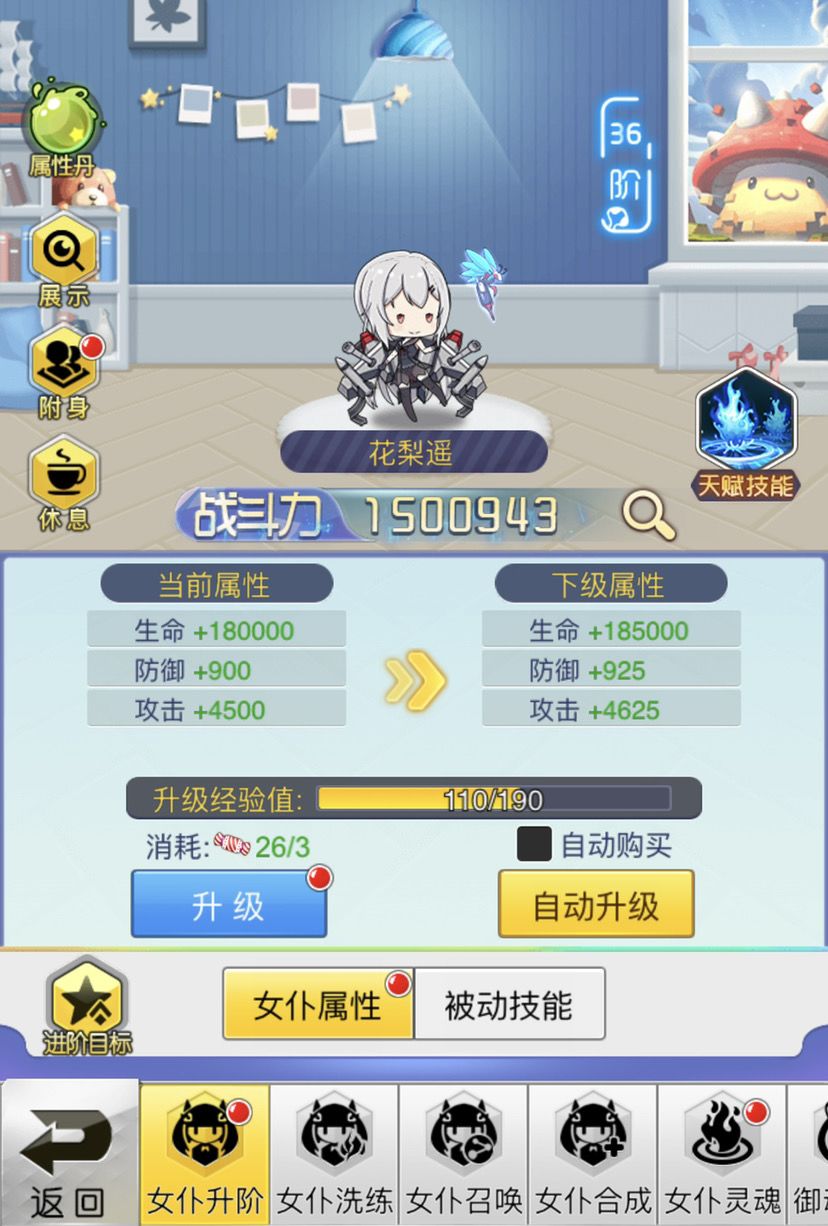 主角2个女仆分别升级到30阶,可开启6个技能格
