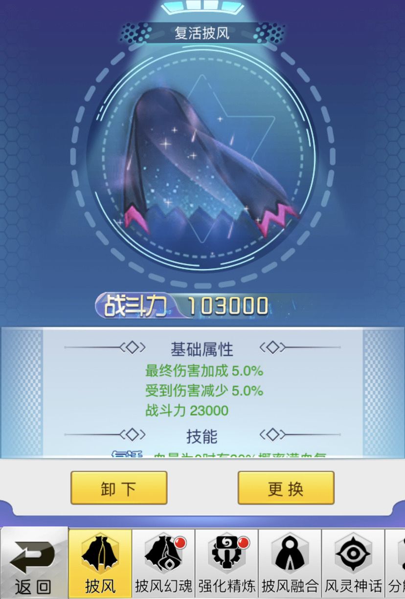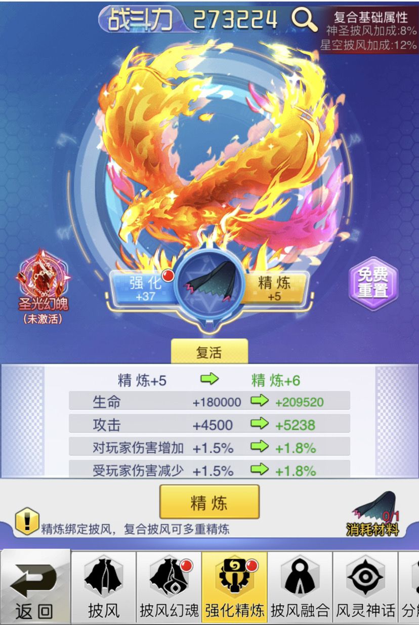 【精炼】:多余的其它披风可在最后页分解(无损)之后兑换给主角同样的披风精炼。