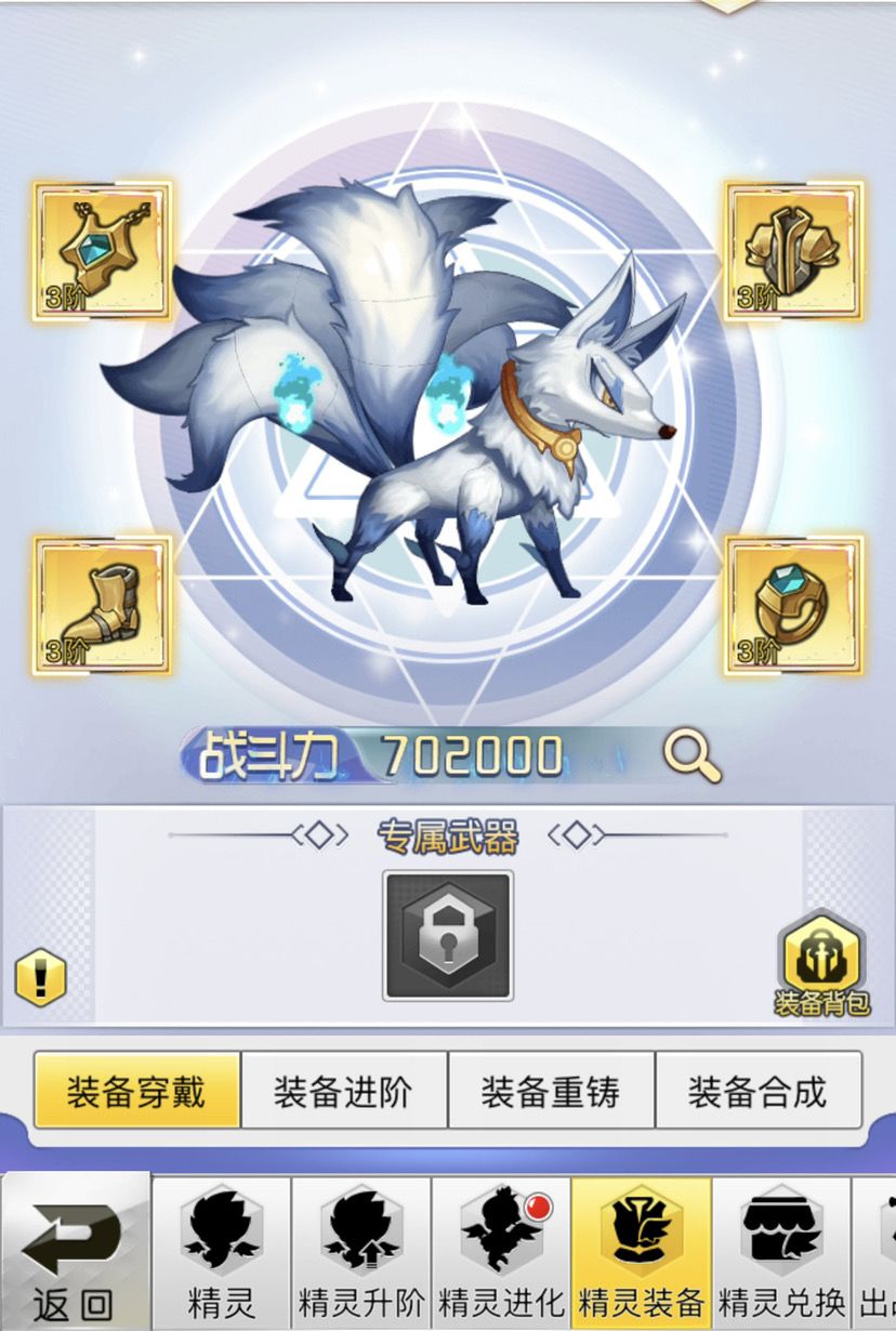 【装备】:精灵装备也是上榜战力重要的一部分,可在兑换商店中换取,优先每只精灵凑齐一套蓝色装备(4个部位),有多余的再进阶成紫色装备(切记最低2件套:2+2,不要1+3)金币充裕的可在排位巅峰商店购买一套3阶装备(770金/件自选部位)