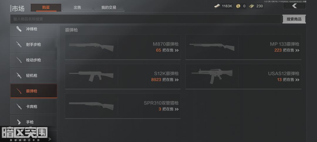 暗区里的散弹枪一共有五把,其中共有单喷两把:M870、MP133;连喷两把:S12K、USAS12;双喷1把:SPR310。