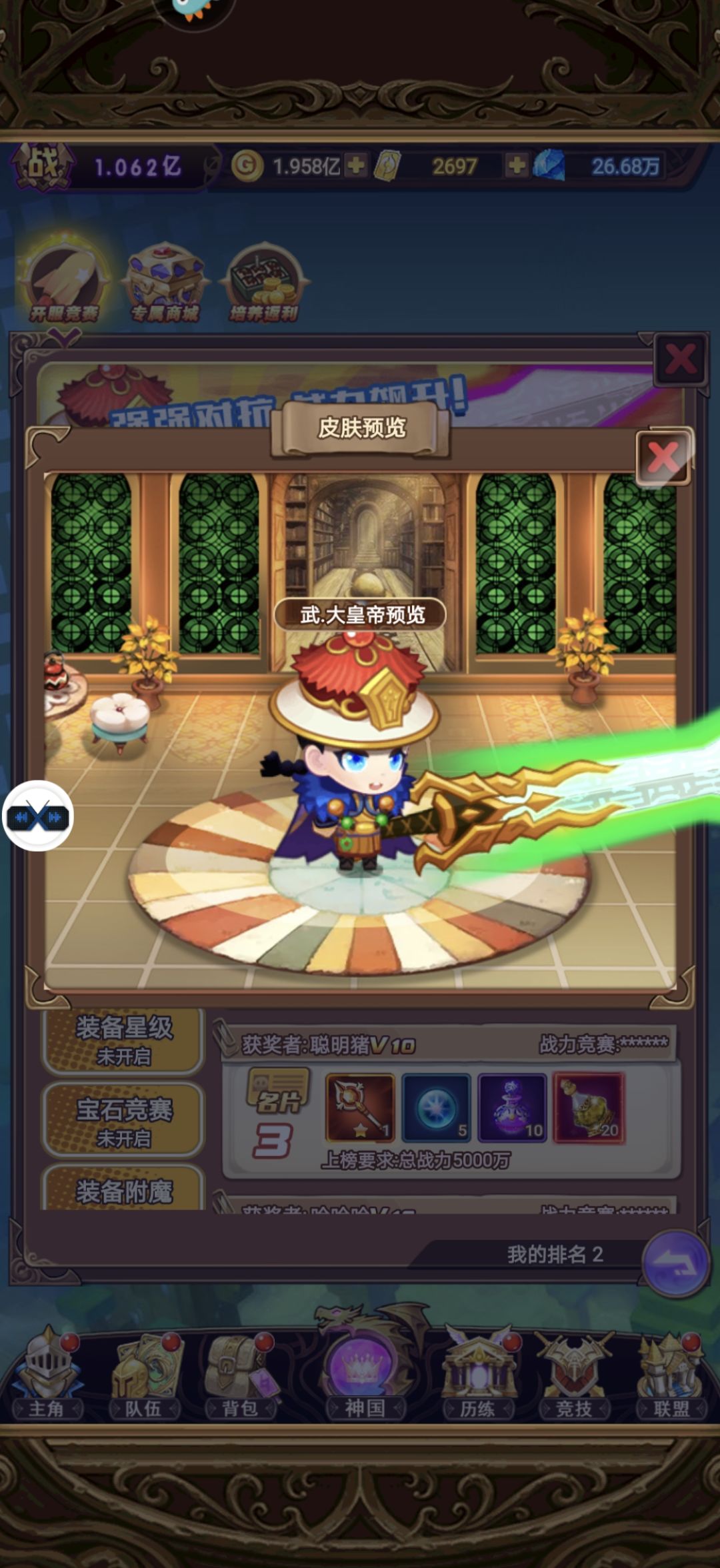 1.第一项是维持7天时间的战力榜 奖励特别好 还有绝版时装武·大皇帝 这个榜只要冲战力就行了 没什么好说的