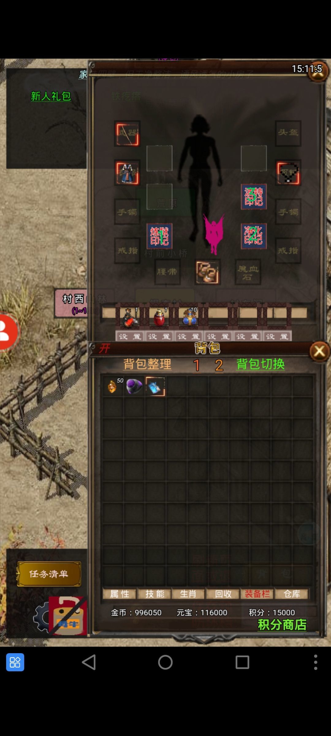 20、等一套红生肖齐了,新手村就算毕业了。背包积分商店买一个灵气,双击就能到白日门啦。回新手村从设置兑换码处输入12345就可回去,或者背包有灵气从水井回去。