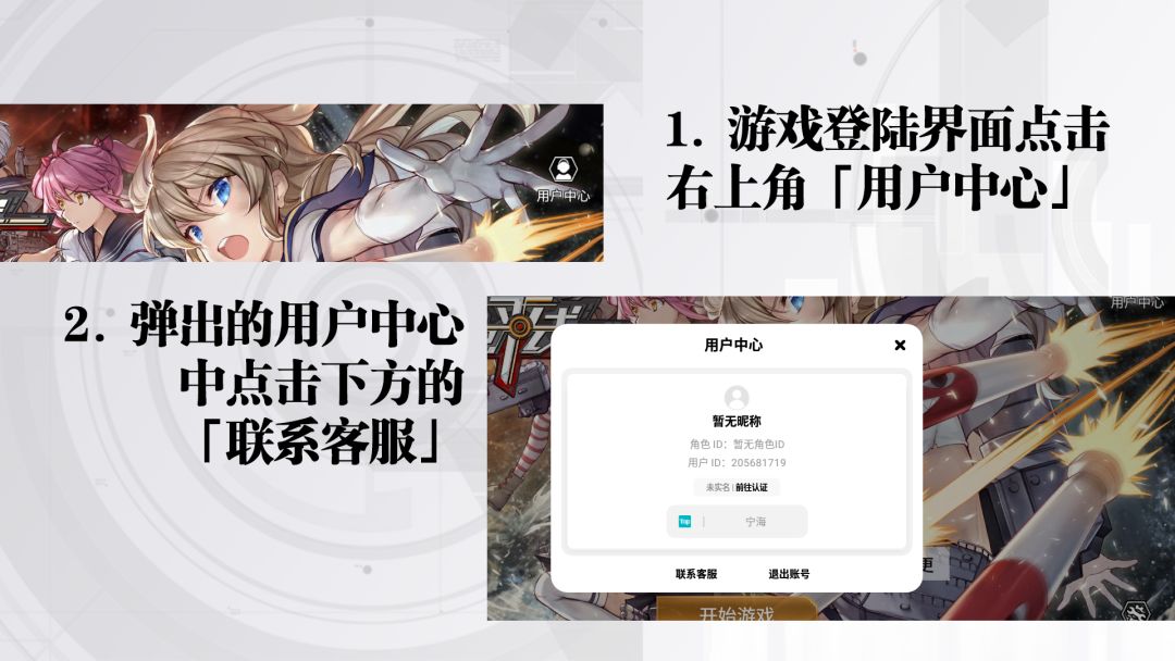 A:在游戏登陆界面,点击右上角【用户中心】-【联系客服】-【问题反馈】。