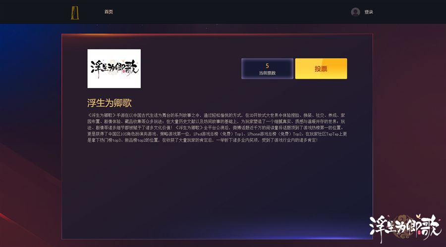 此刻,金翎奖年度优秀游戏评选大赛正式开启投票通道!《浮生为卿歌》诚挚邀请喜爱这款手游的您,投下这珍贵的一票,与我们一起携手传承和弘扬中华优秀传统文化!