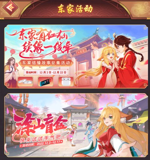 你有故事,我有大奖!快来参加《情牵一线 缘结东家》玩家故事征集大赛,图文视频均可,投稿至官方邮箱,豪华周生生铂金对戒、Switch游戏机、Apple AirPods三代、涂山苏苏手办、京东卡与游戏周边等浪漫大奖等你拿哦!与此同时,游戏内的【涂山盲盒免费开】惊喜有奖活动正在火热进行中,后续还有新年喜宴活动静待开启,这个冬日里和狐妖小红娘一起浪漫暖心过!