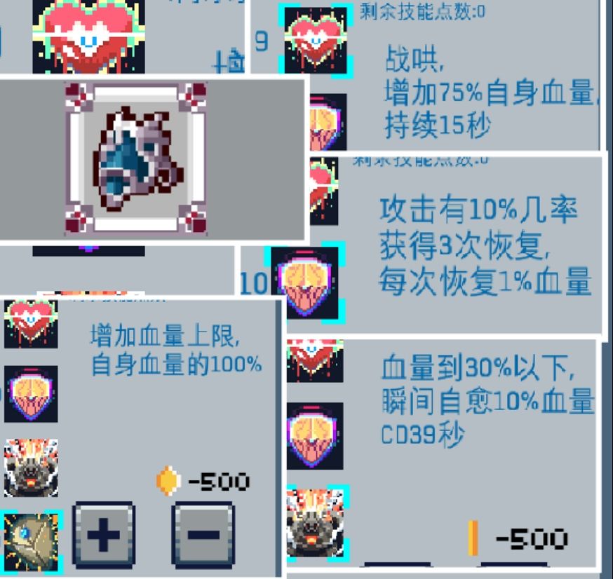一技能每级增加20%最大血量(一键满血)lllll二技能每级增加1%概率和0.1%血量恢复(没必要点)lllll三技能每级减少1秒cdlllll四技能每级增加10%生命上限