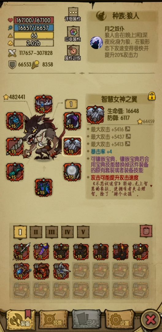 不难看出我的核心伤害基本上是围绕普攻而不是舍身一击,因为狼人最大的优势在于他攻速很快,舍身一击前摇太长,浪费的输出时间,所以我并不以舍身一击为核心伤害,如果你钟爱舍身一击,可以把链锯的技能换成『生命高于百分之80%舍身一击伤害提高15%』也是三级书,不过该书爆率非常非常低,酌情考虑。另外舍身一击施放的时机也要卡在boss两次攻击之间才能吃到。