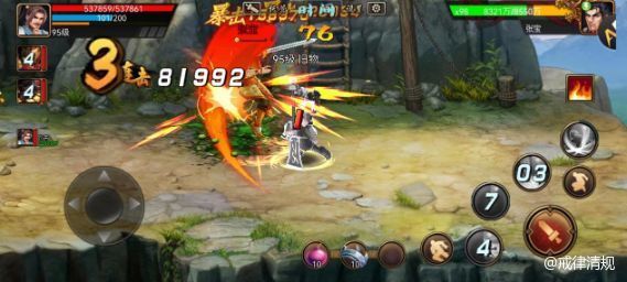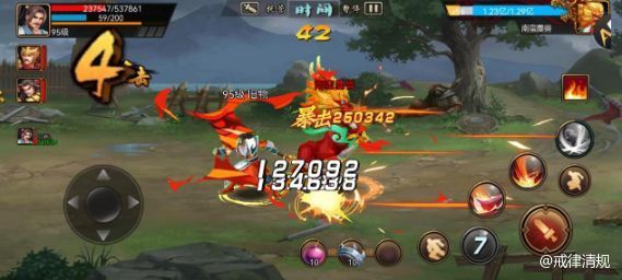 既然说到PVE模式,那么一定少不了组队战斗:军团副本,战役副本、宠物副本、百战试炼……都是我们和好友并肩战斗、挥洒青春的热血战场。既然组队,那么必有主攻与辅助。于禁的技能多跳跃上斩,在聚怪、控制等方面稍显不足,它的长处在于爆发式的输出。因此需要队友使用无双诸葛亮、袁绍等武将将boss控制住,我方切出于禁释放一波狂风骤雨般的技能,轻松实现伤害输出1+1>2的效果。