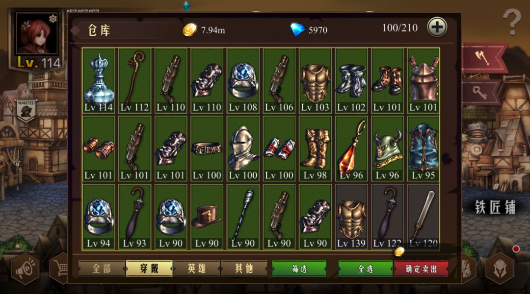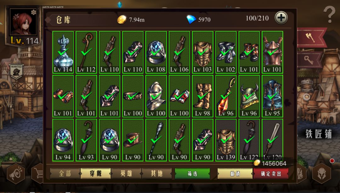注意:为了防止误操作,上锁的、神器级的、传家宝是不能被一键选中的。