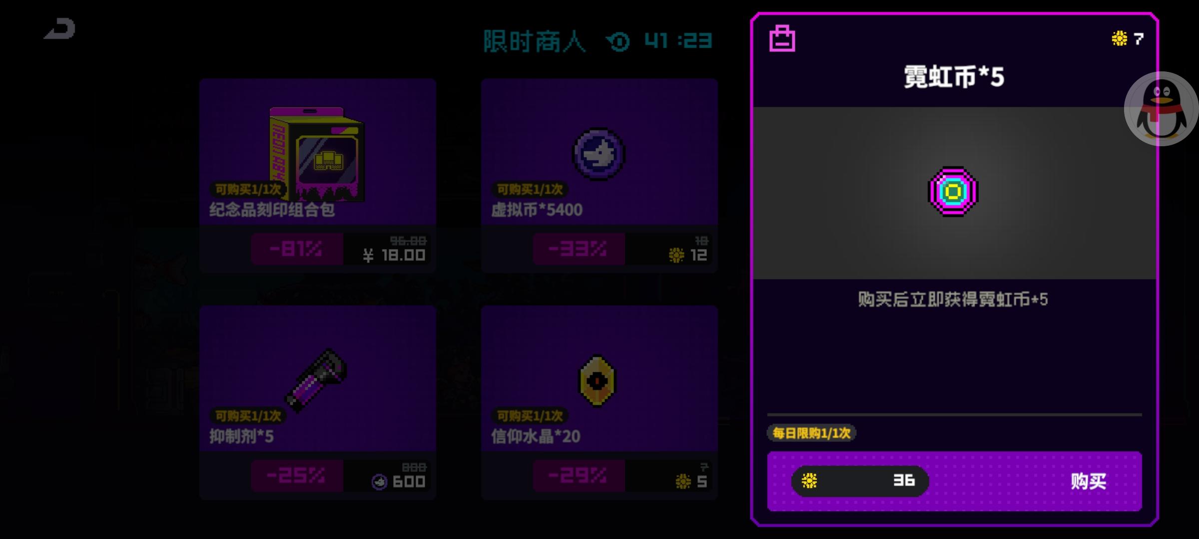 原来这里可以36太阳石买去5个霓虹币,感觉亏死了!