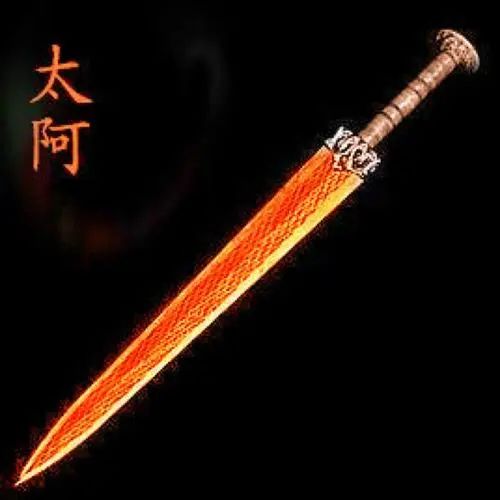 楚王同归于尽都不愿交出来">第二日,楚王果如自己所言,登上城楼,望见远处如浩瀚汪洋一般的敌军,自己的都城就好似狂风中的一粒芥子,那般微不足道,仿佛随时都可能倾覆在晋军滔天的声势之中。这时,楚王望向了手中这把太阿剑,他轻轻拂过剑身说到,太阿剑,今日,便是我以我血祭太阿之时!说罢便挥剑出鞘,以独龙之势直破敌军。这时,令人意想不到的事情发生了,只见一道道凌厉的剑气不断挥出,所到之处无不如万军过境,最终晋军血流成河,枪旗遍野,大败而归。楚王也想不明白,为什么太阿剑会这般霸道,于是他召来风胡子,问出了心中的疑惑。风胡子说,此剑乃威道之剑,而真正的威其实是来自一个人心中的信念,正是因为大王在兵临城下,国难当头的时刻能够不屈不挠,顽强抵抗,正是这种发自内心的威势,才激发了太阿剑的剑气之威啊!李贺曾在《秦王饮酒》一诗中详细而又生动的再现了秦始皇当时御虎征战,挥剑杀敌的画面,也让世人对这样一位略带神秘的古今之一帝有了些许认识。那么,秦始皇手中拿的这把剑是什么呢?