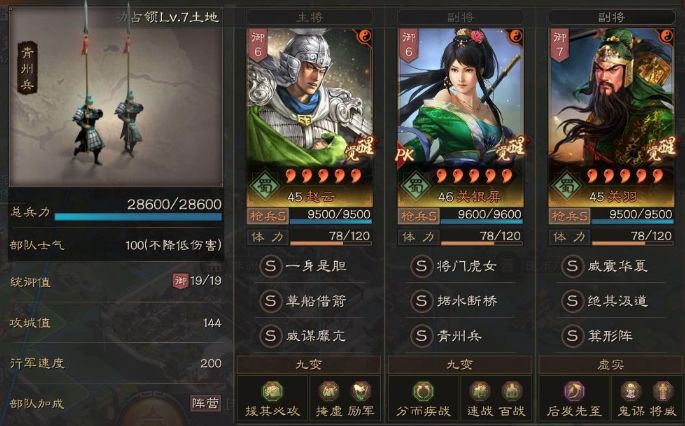 三国志战略版目前航母区从开荒开始全都在争分夺秒,实在是卷的可怕,关键基本上都是大佬的满红队伍开荒,从接战开始也差不多是满红队伍各种碰撞!那么在目前百花争鸣的竞技舞台上,玩家究竟应该如何选择开荒以及成型队伍呢?如果有三踩踏的玩家,那么接下来这套关关赵青州枪非常适合你,无论是机关枪开荒还是蜀骑开荒都可以转型玩起来!