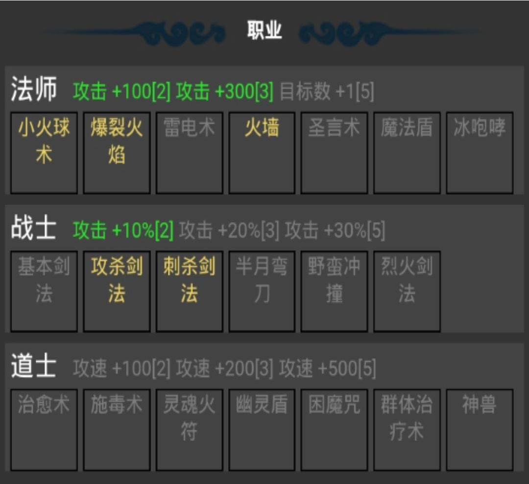 咱们看图说话,新区刚开,由于我们基础攻击攻速慢,战士加攻比,收益太小,道士加攻速,收益也小,法师3技能直接加攻击,很适合我们渡过前期