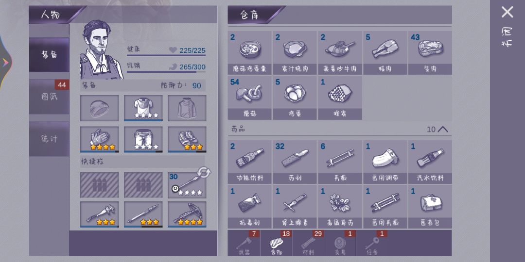 1.开局第0天过任务,氪背包的话就第一天吧森林的资源野怪全拿了,开个加油站地图,刚好第0天结束的(进森林带蘑菇先用家里的木棍x2打4只猪筋其他的不拿,然后顺路把草药木头拿了虫打了加油站图开了,猎人换图纸回家做弓箭和木弓,出来打爆炸小绿虫,木弓打最后一下,羽毛留着打加油站后面的木弩小怪,)。