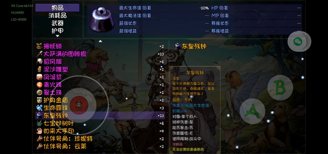 东皇钟,命运76~99法宝商人出,一共5种不朽法宝,随机卖,10灵魂一个,我们需要13个东皇钟和2个七宝妙树叶(死了立刻复活,可以行动),250不朽灵魂可以买完。进塔前保存,没出东皇钟或树叶就读档,可以sl节省灵魂。另外泥沙雕塑(抵挡一次伤害)是1~50层掉落,也可以用。