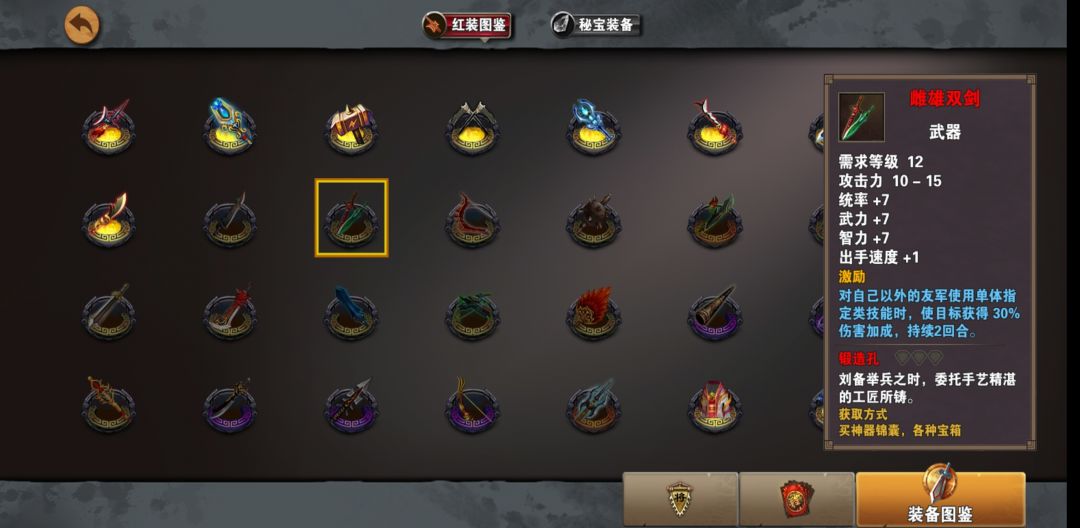 装备出处:关卡北海之围“曹操宝箱”、神器锦囊、金箱子、银箱子都可以开出。