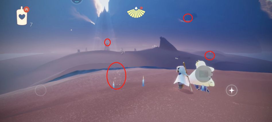 第四个小金人:第二张图最右边中间的那个圈就是第四个小金人所在的位置,在一个山洞里面,需要解锁一个先祖才行。如果你在第三个小金人的位置,那么直接往右边飞即可到达,也正好解锁了先祖。第五个小金人:第二张图右边最上面的那个圈的位置,别看那个岛的位置那么高,贴着云直飞一翼都能飞上去,进入山洞,小金人就在洞里面。