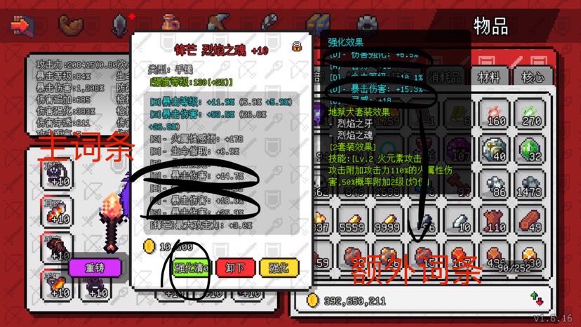 步骤2:准备大量的强化石,然后用很多人都不知道有什么用的强化清零键,重复强化,直到洗出想要的词条