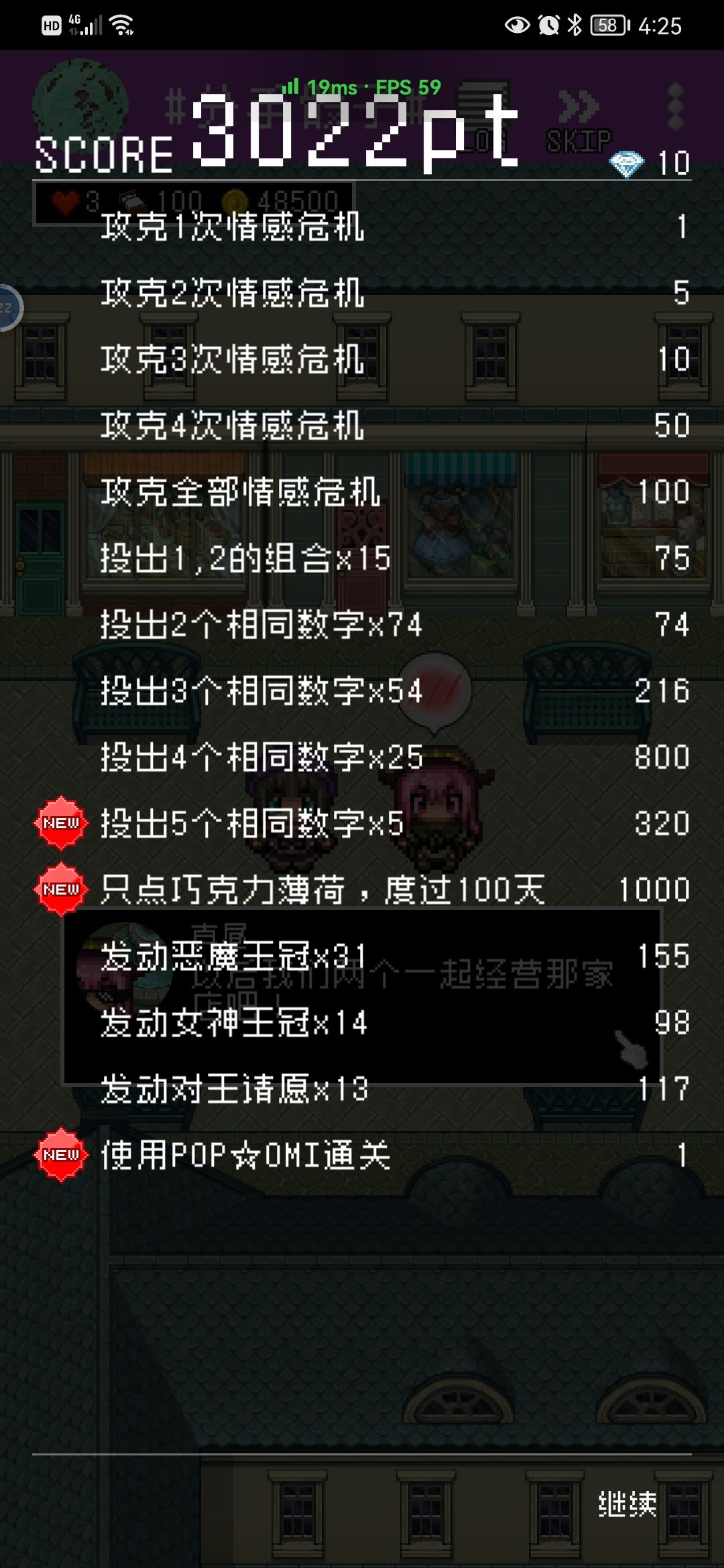 只用60天就四项满级了。符咒和蝙蝠王冠至少要有一个,中期还一个没有就可以重开了。第二把pop直接上3000分。现在成就就差投出123456和6个相同了。