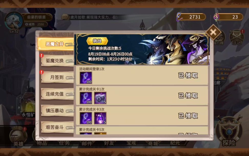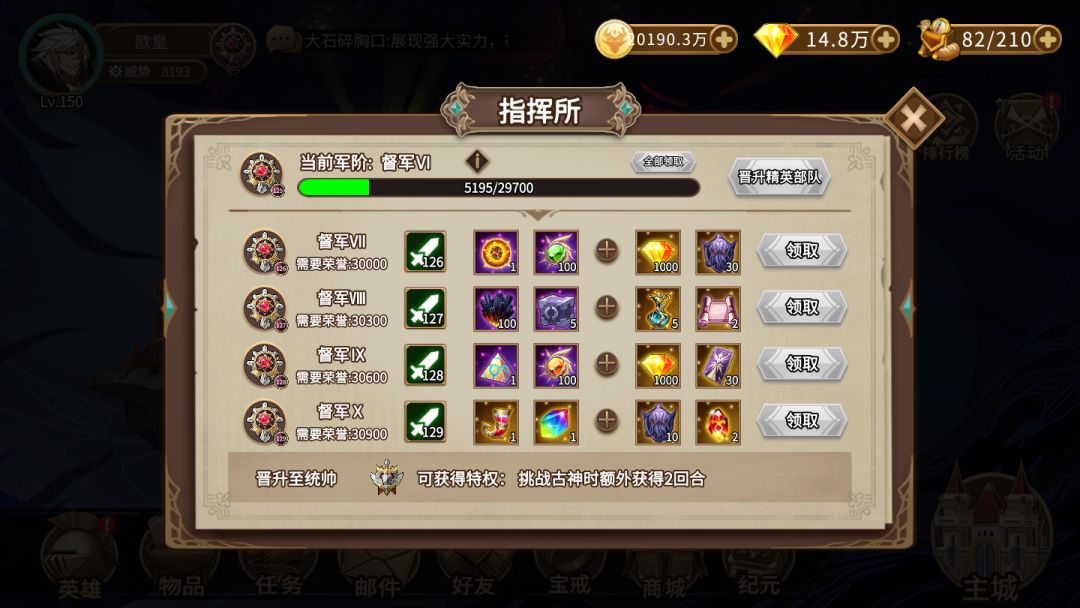 混沌裂隙和无限要塞一样每3天结算一次,36级开启古神挑战关卡(既决战虚空),但两者结算日是错开的。指挥所也和皇家凭证一样值得氪金。