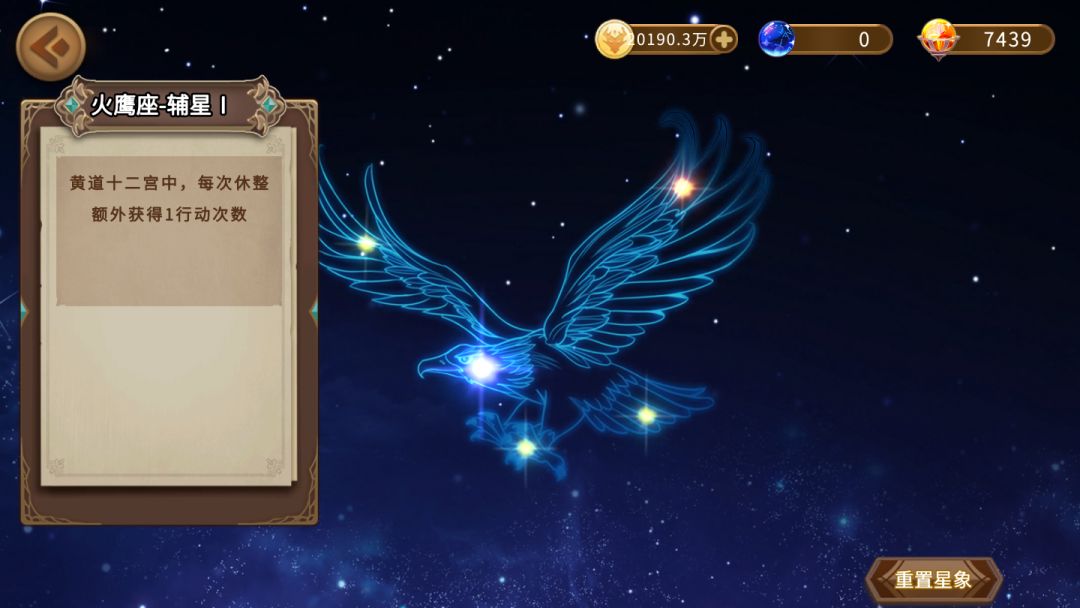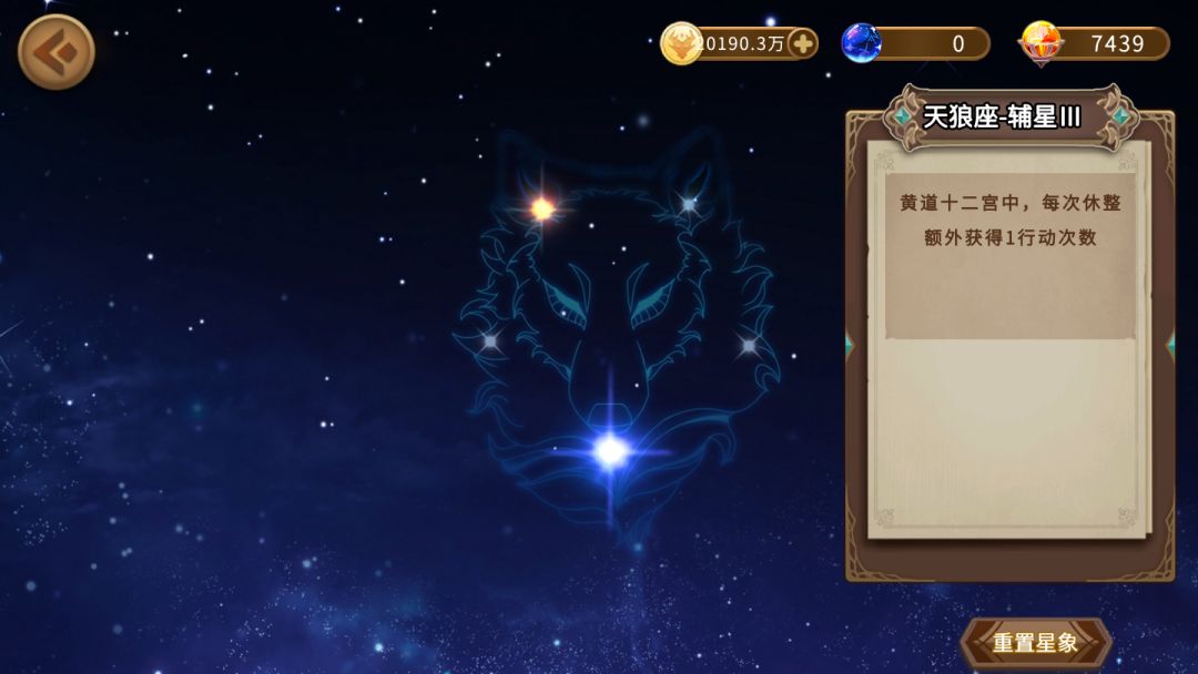 群星之所里面的主星随便点,但辅星请慎重,每个账号的重置次数只有一次,点错可不妙!当然也能直接群里问大佬们怎么点,或者继续往下看。