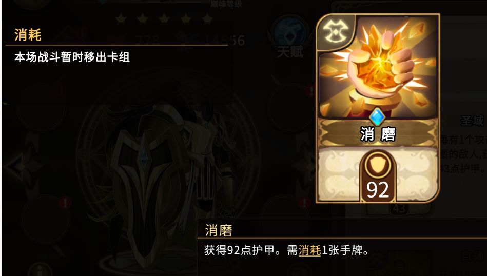 什么是消耗?消耗表示这张卡只能在本场战斗中使用一次,下一场战斗则会继续加入英雄的牌库