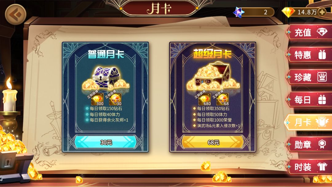 普通月卡和超级月卡都看大家自己需求,反正买了也不亏。至于勋章处的皇家凭证如果想氪那也是必买的。