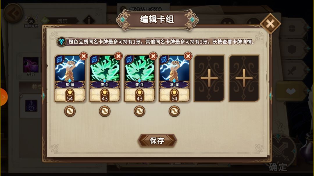 另外通关2-2关卡后,玩家会解锁编辑卡牌功能,注意及时编辑,使用强力卡牌通关!