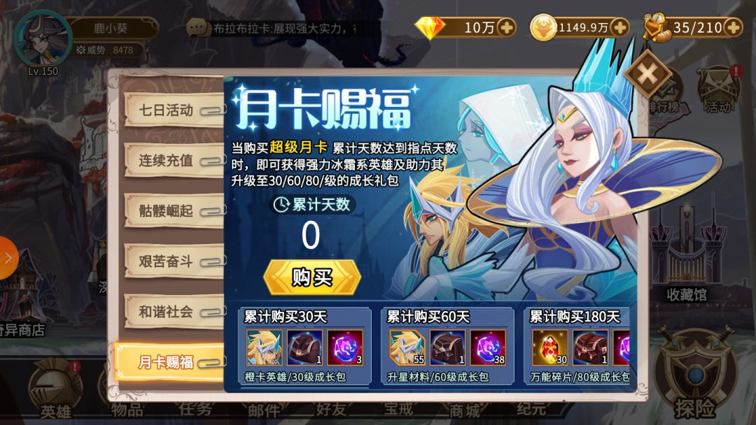 重氪玩家更可以通过月卡赐福(活动里常驻)获得冰队的资源。