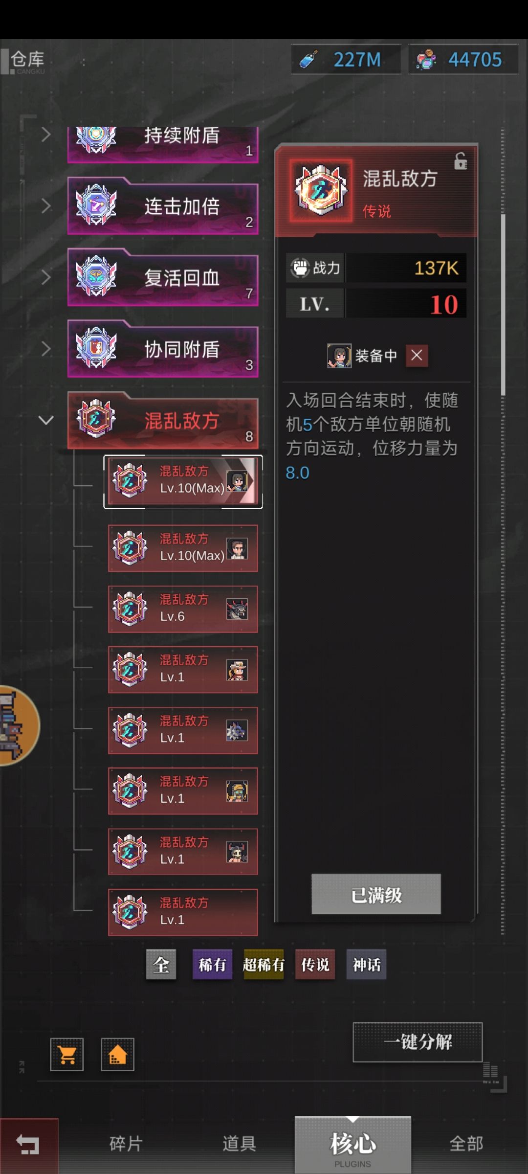 剩下的计划:等药丸升221、升240,继续搞混乱和位移核心,等一个完美攻击或生命怪物,以及成为一颗收集方舟套装的老韭菜...