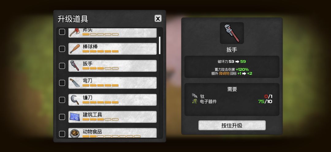 哪位大佬能告诉我斧子和扳手的升级材料在哪吗?