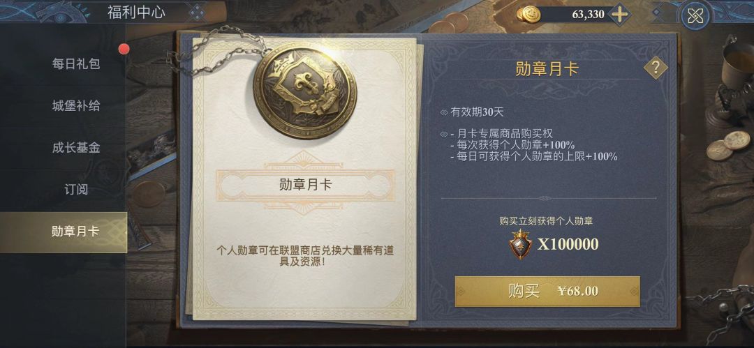 Tips:因为个人勋章可以在联盟商店兑换大量稀有道具及资源,所以大家可以考虑开通勋章月卡,个人勋章获取更迅速。