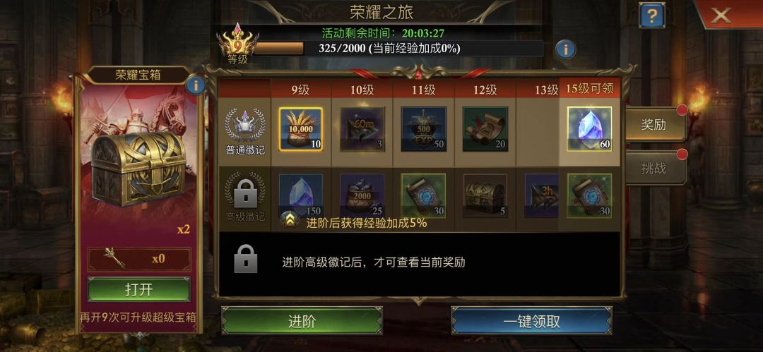 最后的亚瑟王和兰斯洛特这两个英雄可以说是所有阿瓦隆人的梦想了,土豪有了这两个英雄组合可以说是拉开了一个梯度,在荣耀之旅的箱子中可以概率获得,进阶高级徽记可以获得更多的箱子和碎片。