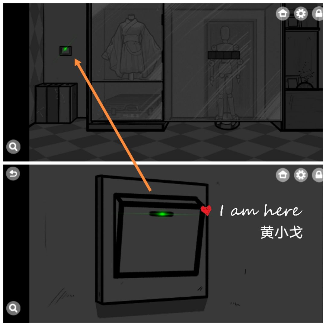 1.(有展示柜的房间)点击墙上发绿光的开关,打开灯
