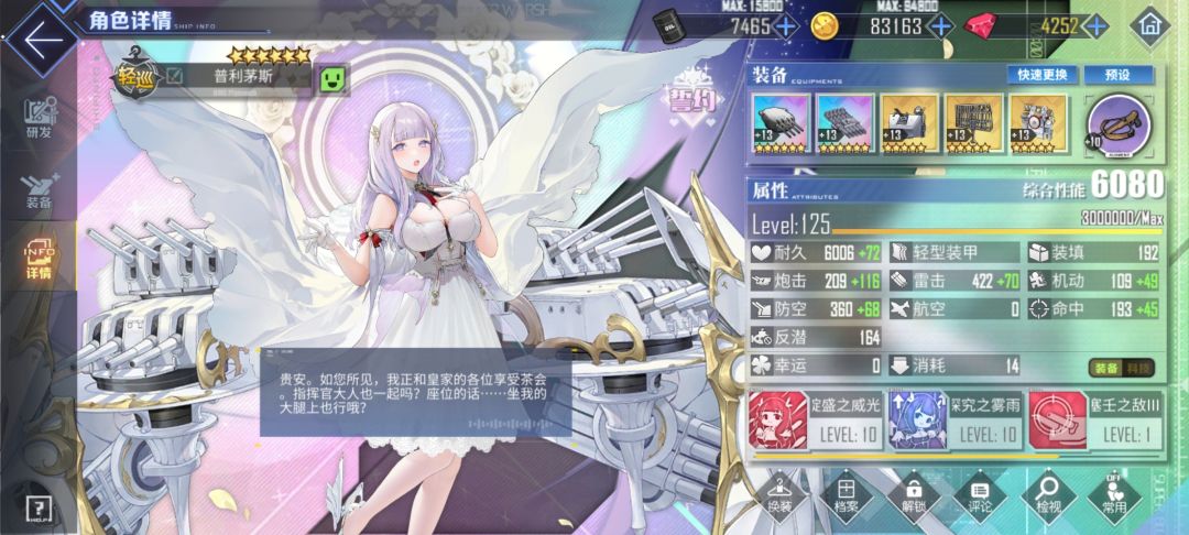 大多数情况,输出比超巡还高就很离谱,原本普利茅斯就给我的印象就是生存能力很高的炮队拐,满装备,满30科研,老咸鱼四个月的大世界全勤啊!攻防辅一体,真.全能王,不知道怎么形容普利茅斯小姐,有一种强度的美!优雅,实在是太优雅辣!顺便再吐槽一句,皇家阵容就喜欢少一个技能是嘛,然后一个技能更比两个技能的效果还多,如果把普利茅斯二技能差分一下,也是红黄蓝配置齐全的技能组,知道了,小加加一定是为了让咸鱼指挥官多省两本彩书,用心良苦!😯