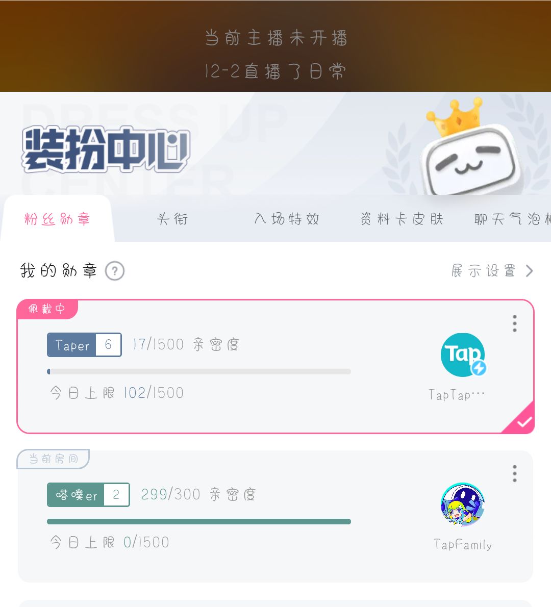 错过了,而且粉丝牌也取过名了
