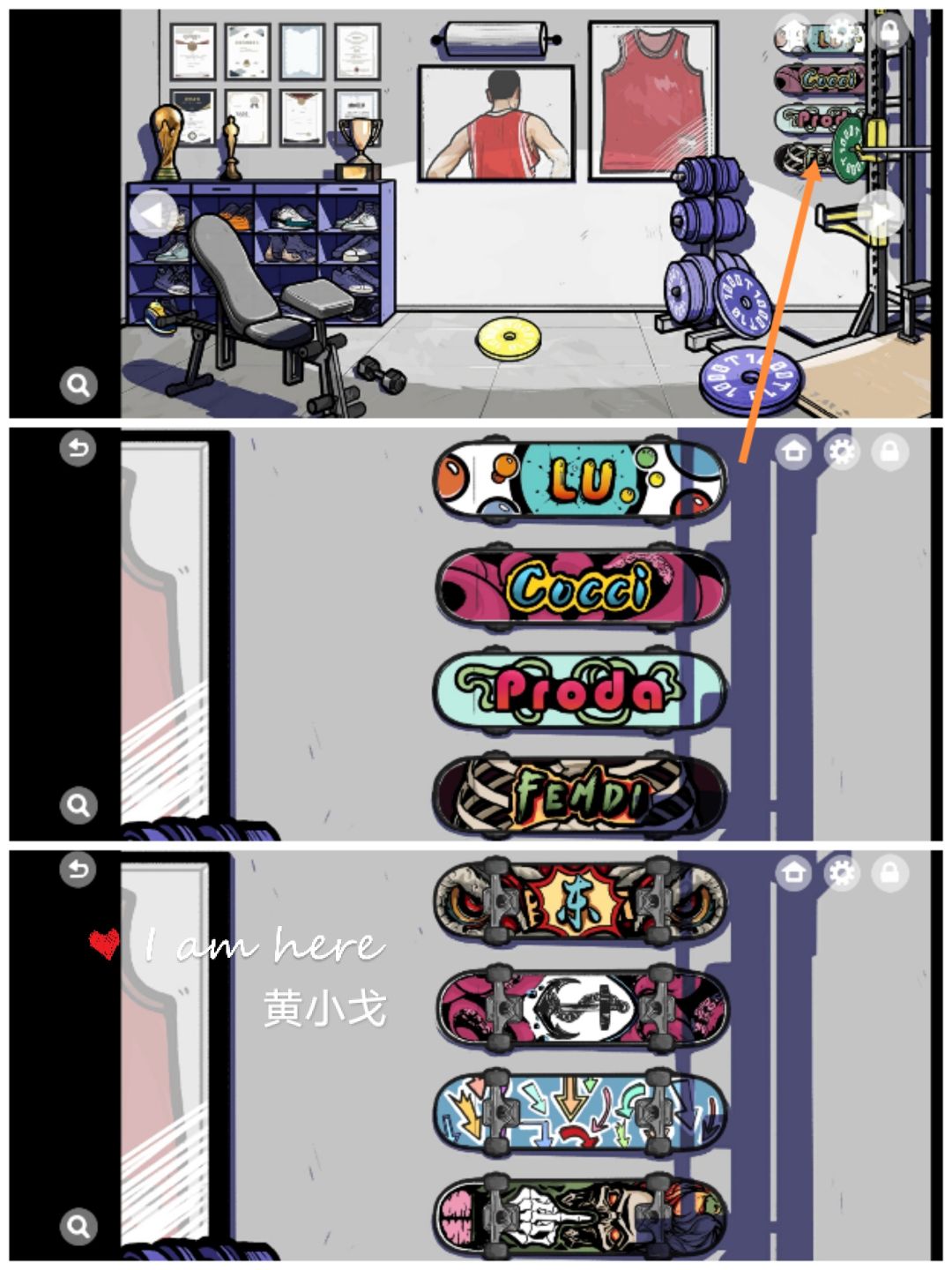 1.(一楼健身房)点击墙上的滑板,将滑板翻过来,得到方向线索:右左下右