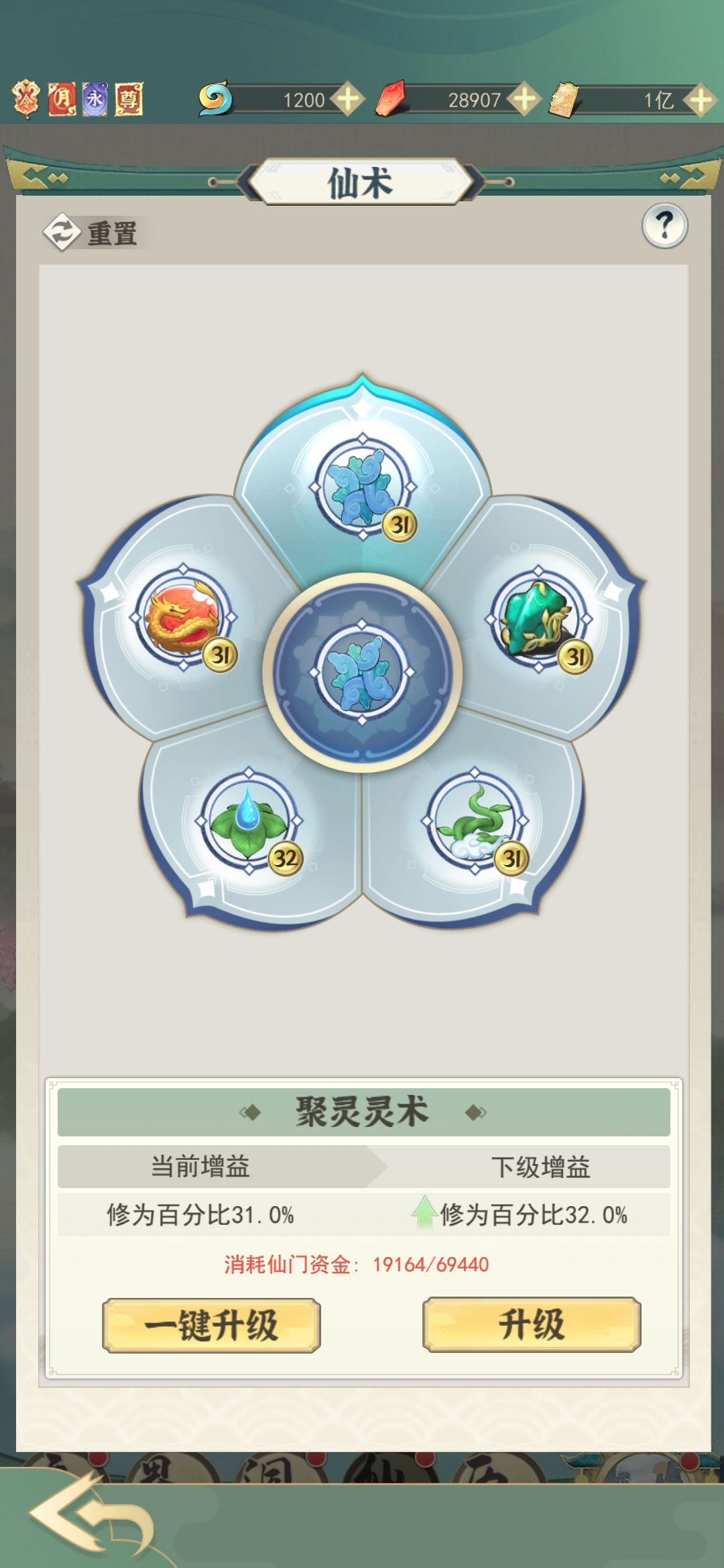 如果你想创建宗门的话或者你是副宗主,前期的资金不要升级仙术只升级宗门等级,捐献10w灵石就行。到灵界在升级宗门仙术
