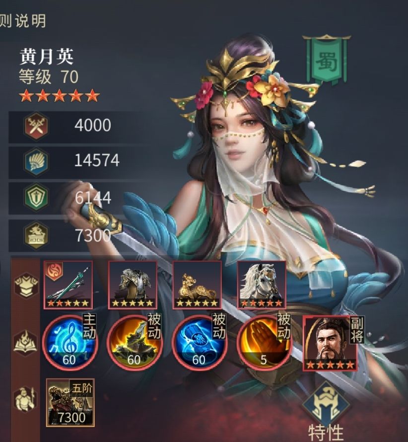 她的伤害机制是靠智谋差打伤害。因此副将还需要提供智谋值方面的提升。