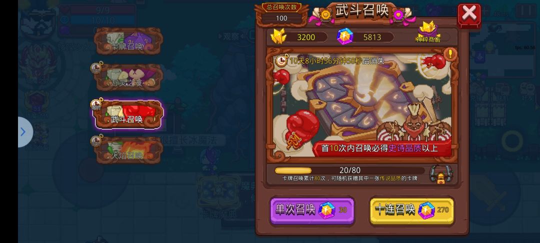 ②获取方式:最基本的就是【抽卡】,刚好现在是单独的武斗池,270萤石十连,或者2700魔晶十连,并且在抽取80次后会有单独赠送一个保底。