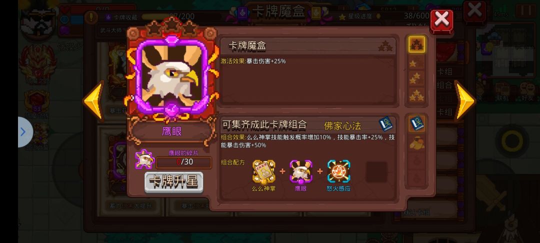 【鹰眼】这张卡牌则可以增加25%暴击伤害,让你的伤害更上一层楼。