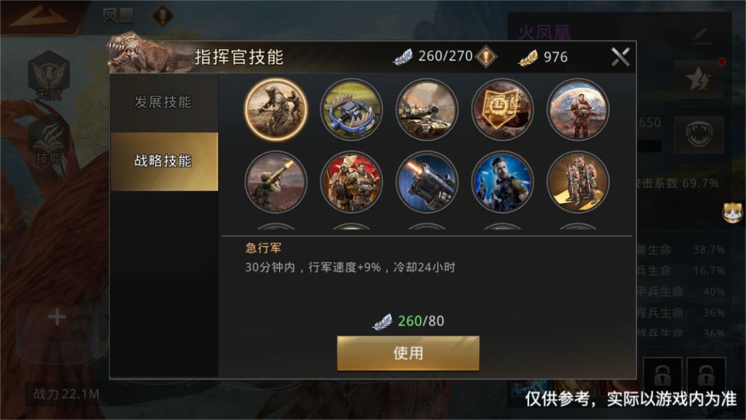 指挥官技能可通过升级天赋获得,使用指挥官技能需要消耗普通羽毛或者凤凰羽毛。