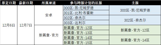 1.原定于12月6日的部分服务器数据互通计划将延后至12月7日进行,涉及区服如下: