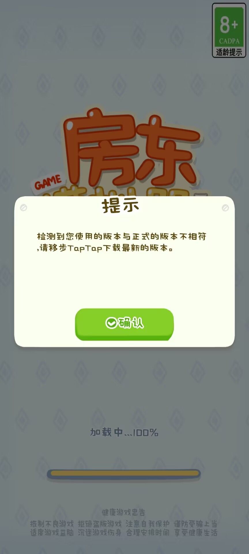 房东模拟器将于2022年12月6日00:00起停服一天,届时游戏将会提示版本不对,请重新下载(如下图所示),