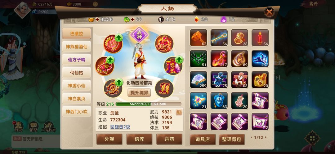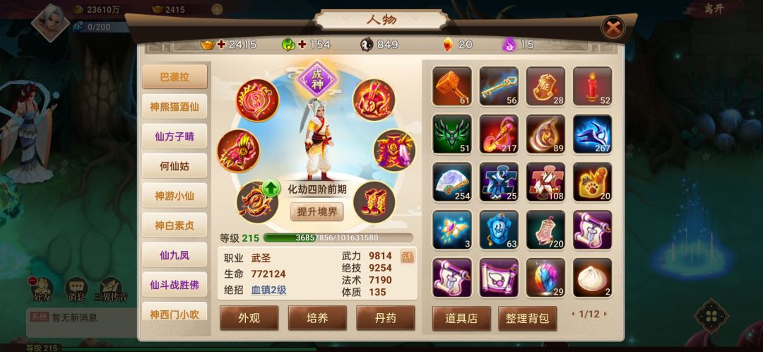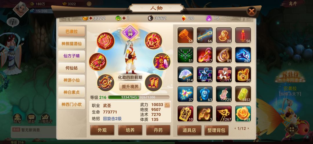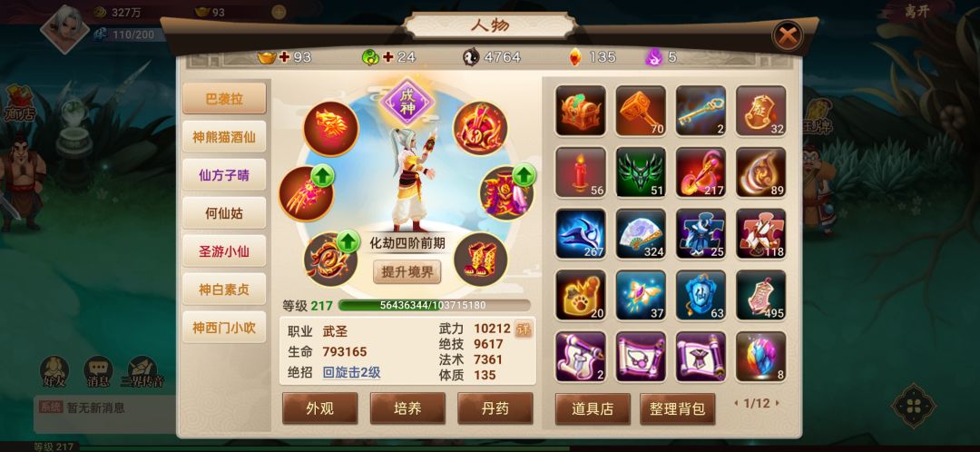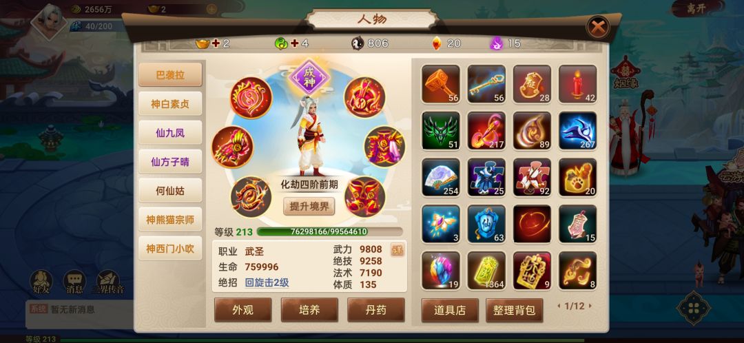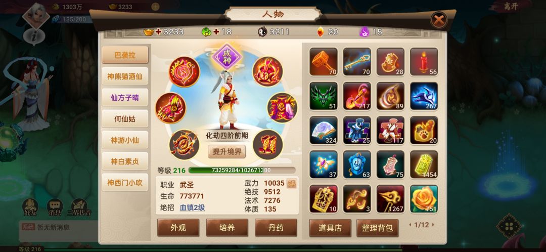 今天花了不少元宝,魔窟寻宝点了六次,买境界点花了200