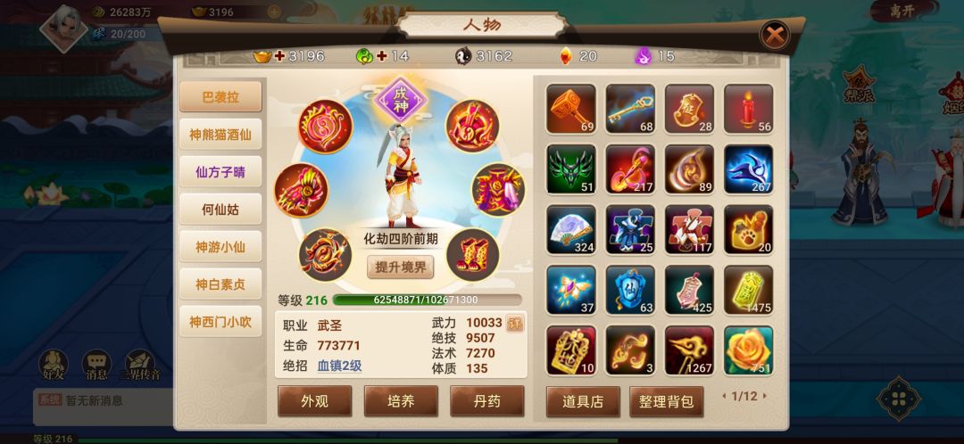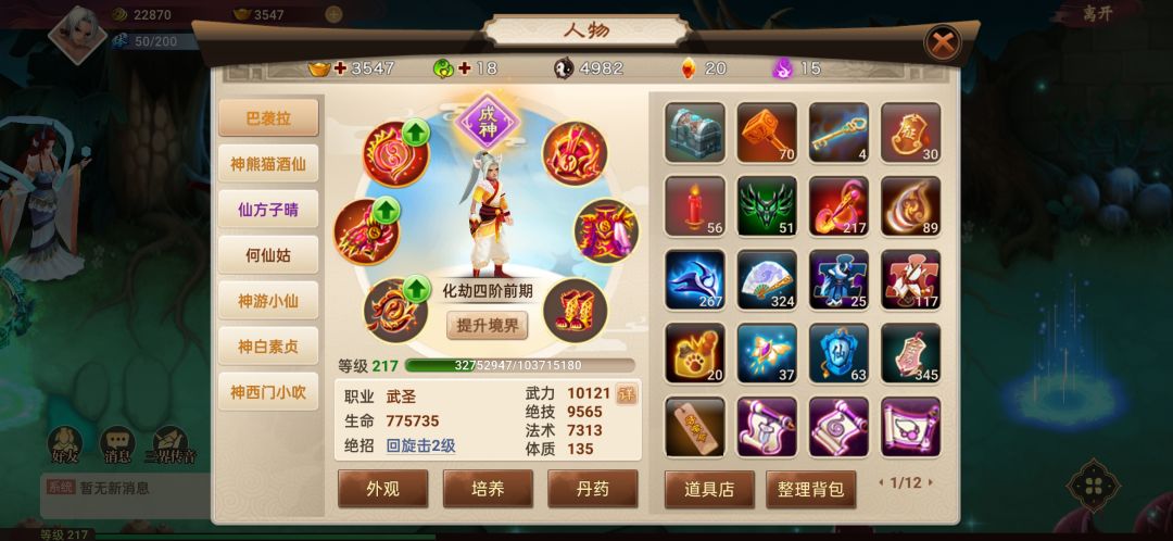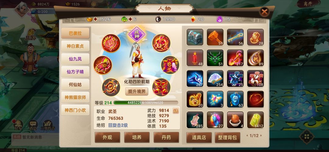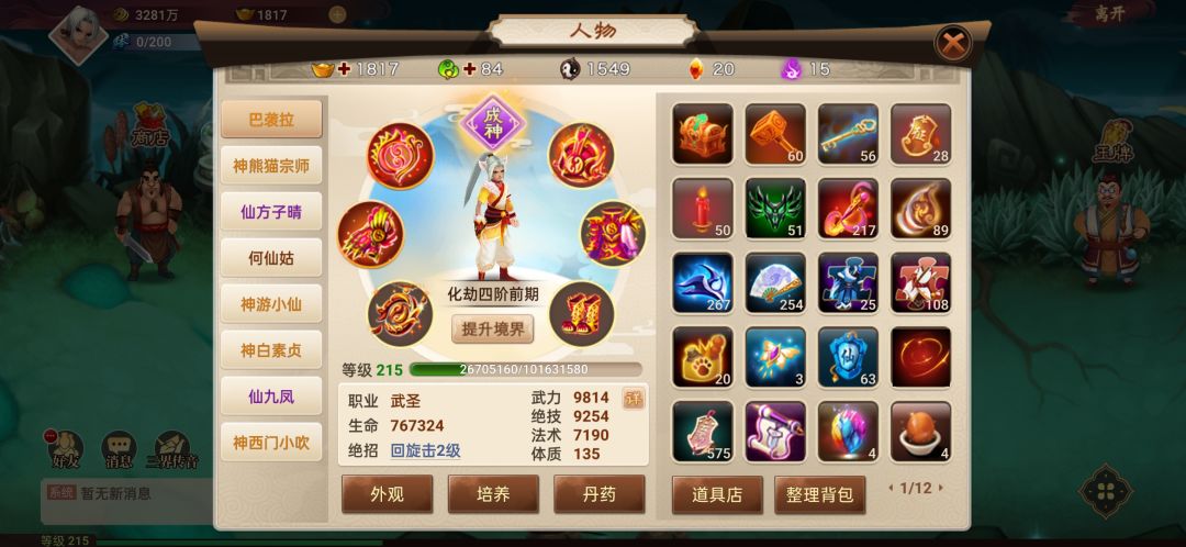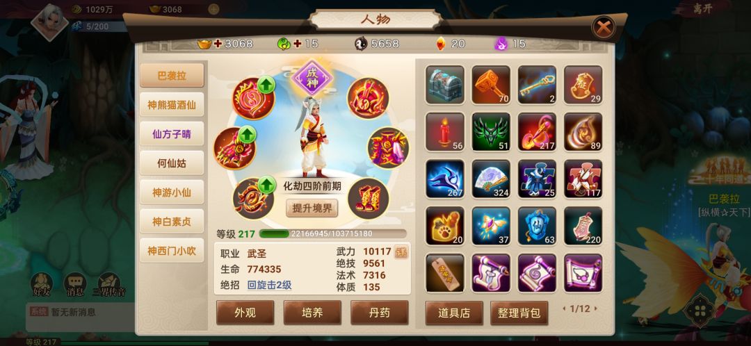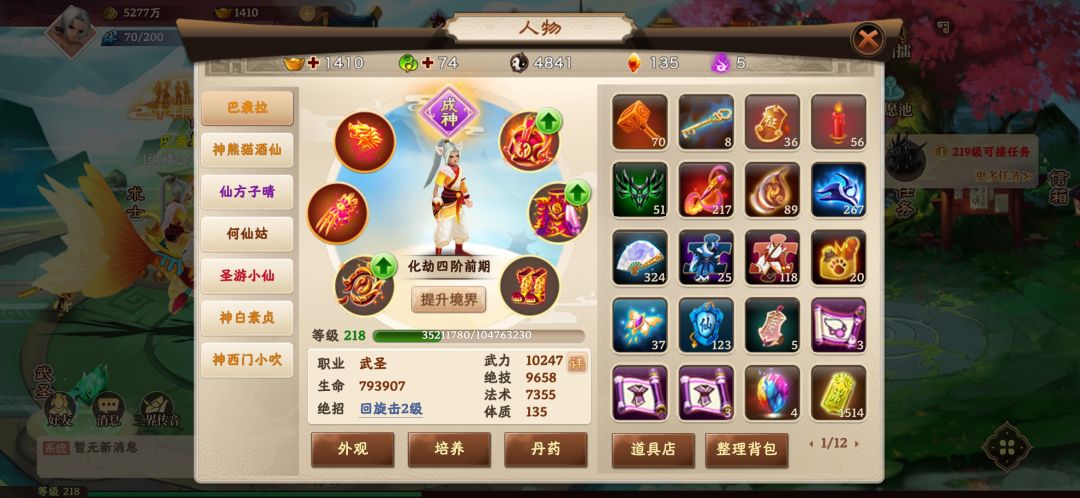 今天花了不少元宝,魔窟寻宝点了六次,买境界点花了200