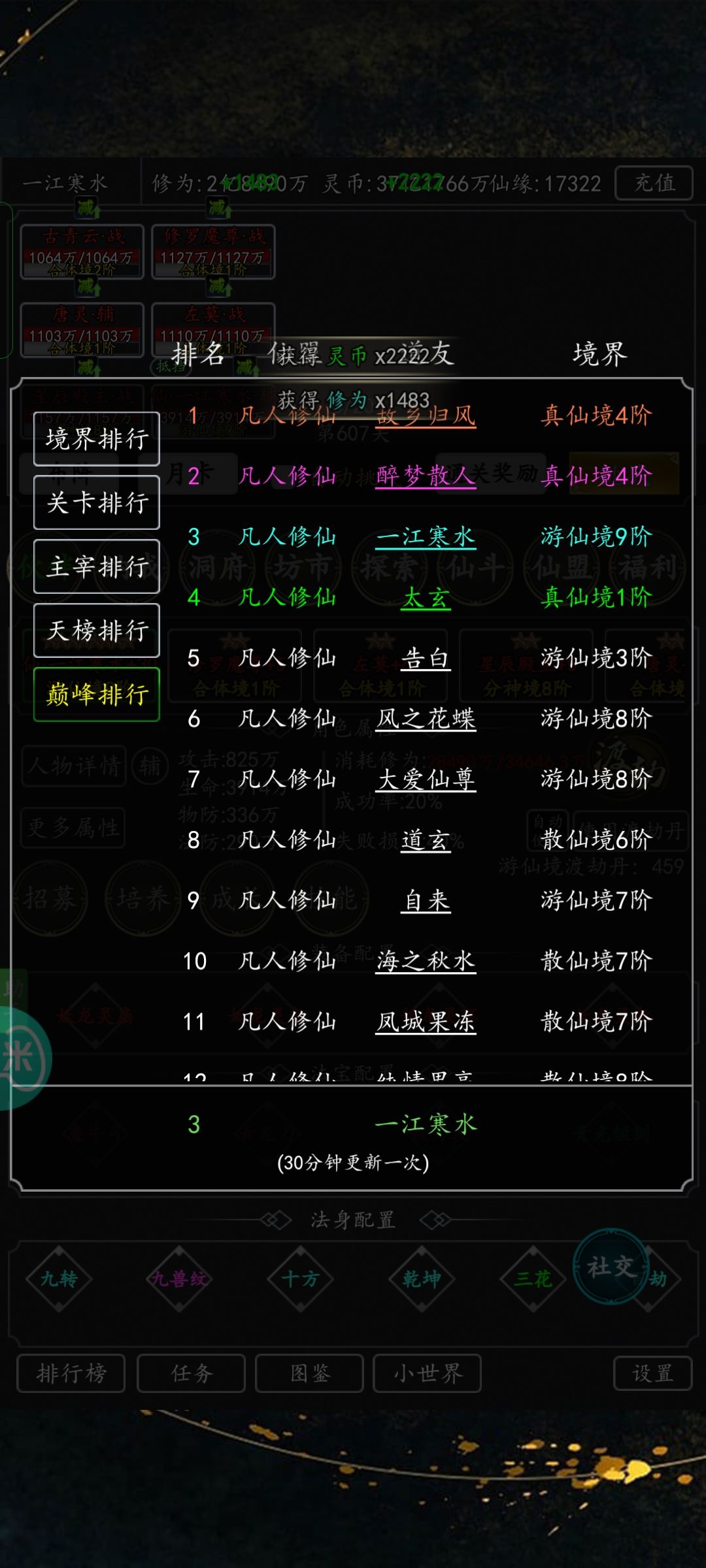 6:道侣道侣提供的加成几乎是火箭式的,所以早一天上游仙早一天有优势,特别是对本就不友好的魔族。道侣的数据加成特别离谱动不动就有几十万的伤害加成所以我建议不卡五倍之后每五天买一次双修丹
