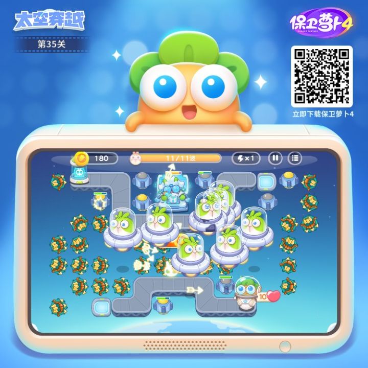 太空穿越35,单炮塔多重箭,不打飞碟兔,最后八个飞碟兔😁